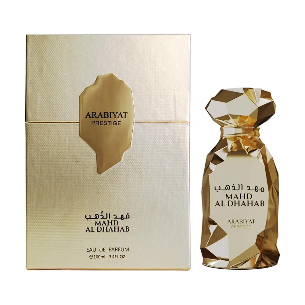Arabiyat Prestige Mahd Al Dhahab opens with a luxurious burst of warm spices and soft sweetness that instantly feels rich and opulent. As it develops, creamy gourmand nuances blend beautifully with smooth florals and subtle woody tones, creating a heart that feels elegant, comforting, and deeply captivating. In the dry down, golden amber, velvety vanilla, and sensual musk wrap the fragrance in a warm, long-lasting trail that feels both regal and addictive.