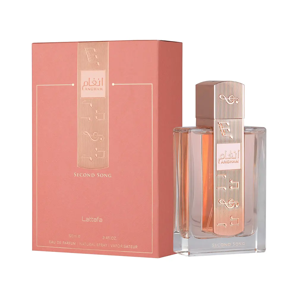 Lattafa Angham Second Song 100ml EDP is a beautifully expressive feminine fragrance that feels like a soft, enchanting melody captured in a bottle—elegant, radiant, and irresistibly charming. It opens with a sparkling burst of bergamot blended with juicy pear blossom, creating a fresh yet gently sweet introduction that instantly feels uplifting and graceful. As it settles, a delicate floral heart of orange blossom and peony blooms, adding a romantic and airy character, while a subtle praline accord weaves in a creamy, slightly gourmand sweetness that makes the scent feel truly addictive.